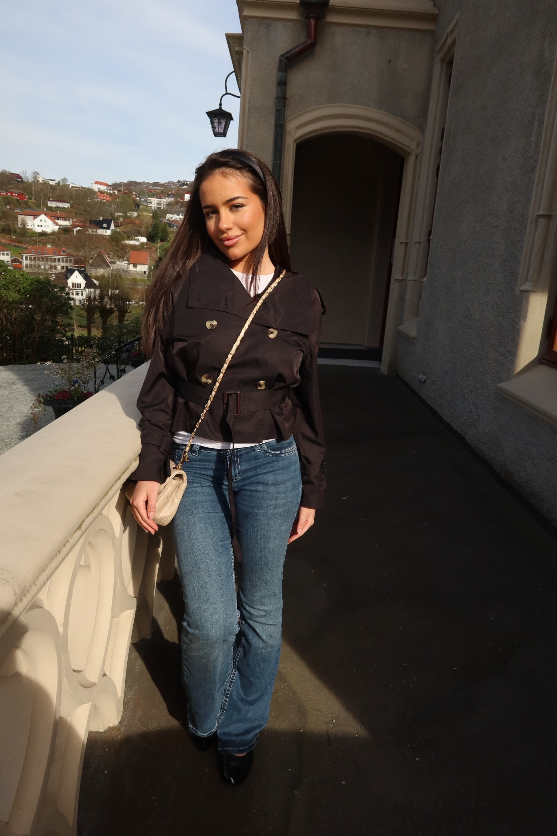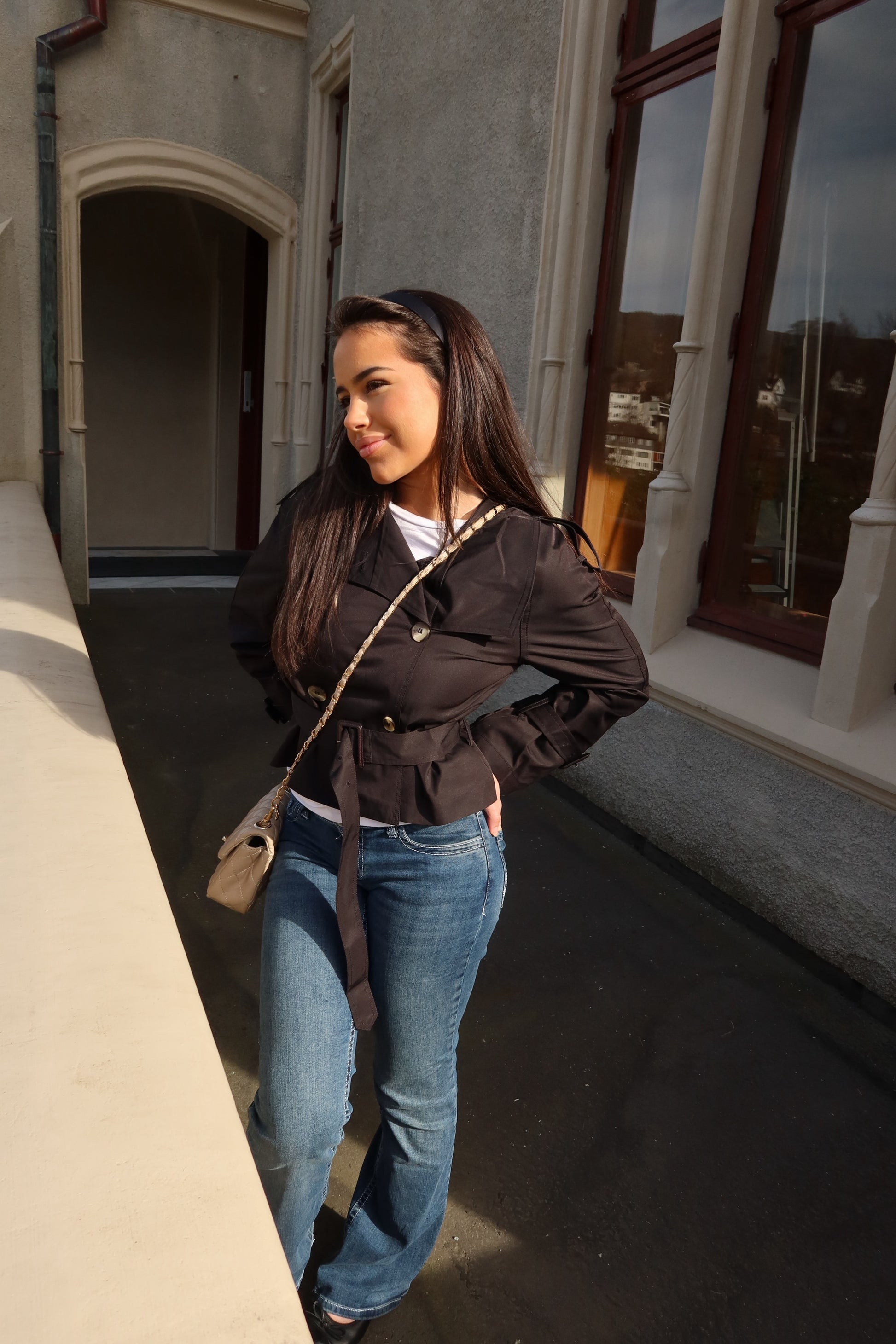 Klassisk trenchcoat med høy krage og knappelukking i front. Stormklaff bak, skulderklaffer og lange raglanermer gir et tidløst uttrykk. Diskré sidelommer og justerbart belte i midjen for en flatterende passform. Ermene har justerbare spenner. Uten fôr, perfekt for overgangssesonger.